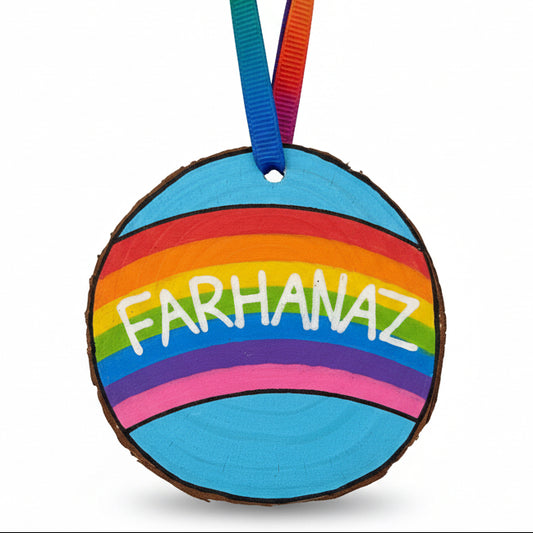 Personalisierte Regenbogen-Holzscheibe